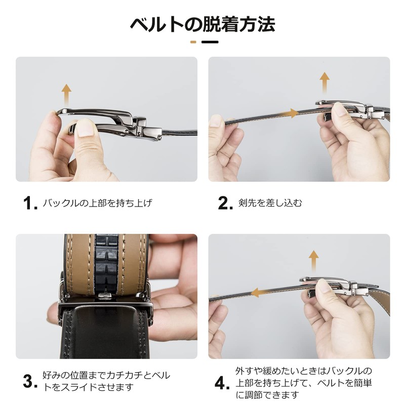 GOLDLEMON Men's Genuine Leather Belt, Auto Lock, Business, Casual, No Holes, 38 Adjustable Levels, Leather 45.3 - 53.1 inches (115 - 135 cm), Black