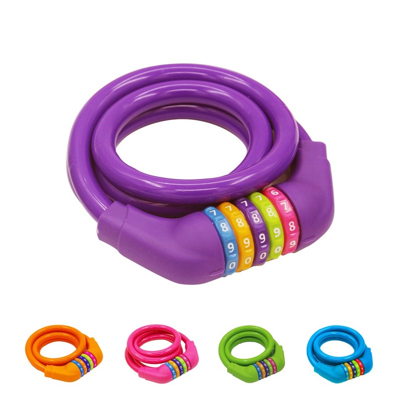 GOLDPOOL Kids Bicycle Cable Lock Colorful High Security 5 Digit Cable Lock 110cm Long Purple