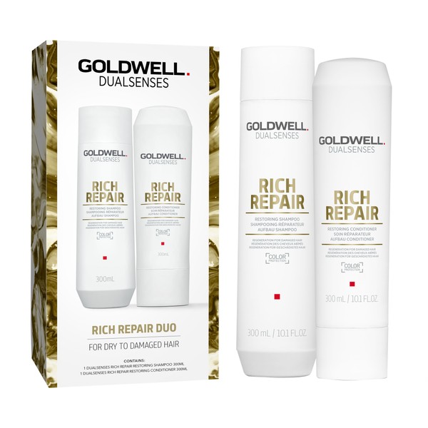 Dualsenses Rich Rich duo, containing Rich Repair shampoo and Rich Repair conditioner, for dry to damaged hair
