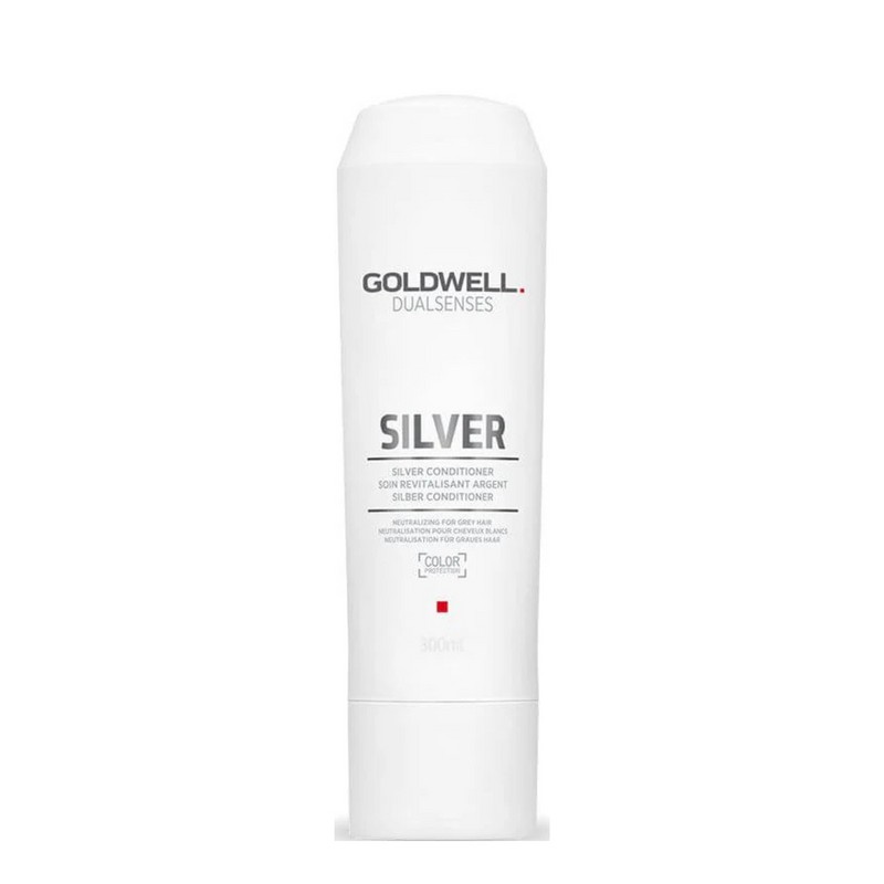 The Goldwell Dualsenses Silver Conditioner 300ml is a premium hair care product designed to enhance and maintain the vibrancy of blonde and grey hair. This conditioner from Goldwell's Dualsenses range is specifically formulated to neutralize unwanted yellow tones in blonde and grey hair, leaving it looking fresh and vibrant. Enriched with microPROtec complex and Luminescine, it not only conditions but also adds a brilliant shine to your hair. The lightweight formula ensures that your hair remains soft, smooth, and manageable without any heavy residue. What are the features and benefits of Goldwell Dualsenses Silver Conditioner 300ml? Neutralizes unwanted yellow tones in blonde and grey hair Enriched with microPROtec complex and Luminescine for added shine Lightweight formula that leaves hair soft and manageable Suitable for daily use without weighing hair down Who is Goldwell Dualsenses Silver Conditioner 300ml for? Ideal for individuals with blonde or grey hair looking to maintain color vibrancy and achieve a brilliant shine.