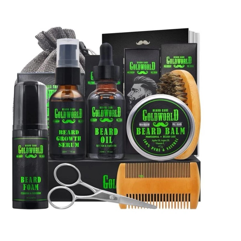 GoldWorld Beard Kit Beard Growth Grooming Kit w/Beard Foam/Shampoo/Wash Beard Growth Oi...