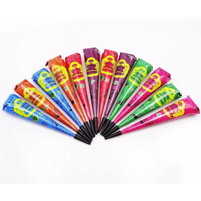 Golecha Henna Mehandi Temporary Tattoo - Multicolor - 12 Cones II US Ship