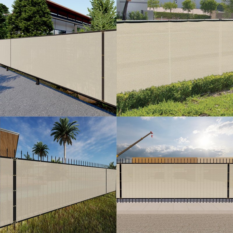 Goleray Privacy Screen Fence 4'x147' Beige Outdoor Screen Panels Windscreen Mesh Fencing Blockage Shade Net Cover Temporary Fence for Backyard Balcony Pool Deck Porch Garden
