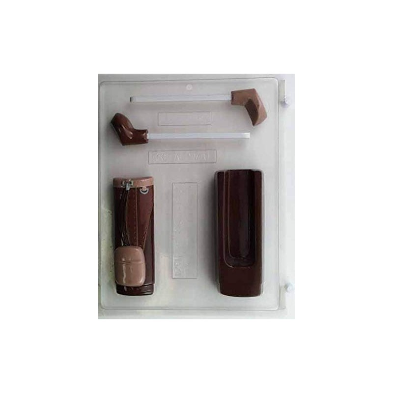 Golf Bag and Two Golf Clubs Open Pour Box Style Chocolate Candy Mold (doesn't stand) S035