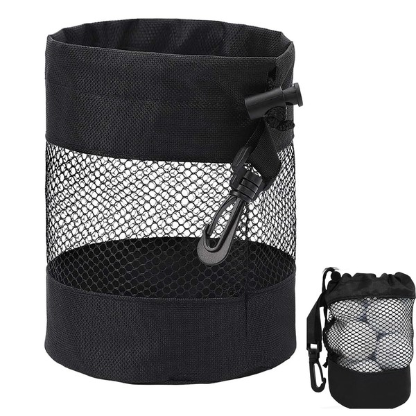 Golf Ball Bags,Nylon Mesh Ball Bag with Drawstring, Pouch for Golf Accessories (Black)