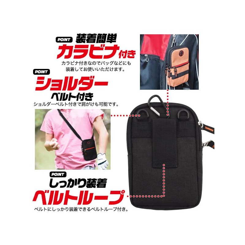 - 3 ways to attach: Comes with a carabiner in addition to the belt loop, so you can attach it to a golf bag or other items! It also comes with a shoulder strap, so it can be worn over the shoulder