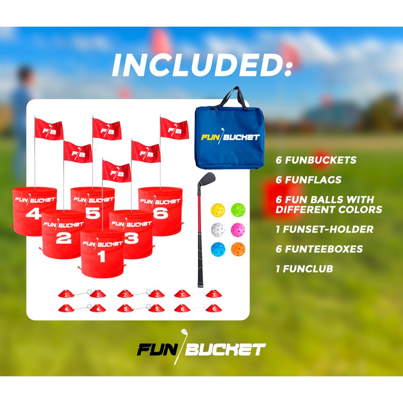 - 🎯✅ What you will get :Discover the ultimate game experience with FunBucketGame! Our exciting set is designed for all game lovers, providing everything you need for endless fun. Inside, you’ll find 6 vibrant FunBuckets-Game, 6 colorful FunFlags, and 6 unique Fun Balls, all ready to elevate your playtime. Plus, a practical FunSet Holder makes it easy to carry everything wherever you go. With 6 Fun TeeBoxes and a Funclub included, you’ll be fully equipped to dive into the action. Set up is a breeze, and you can choose to create your own rules or stick to the official ones. get ready to enjoy !