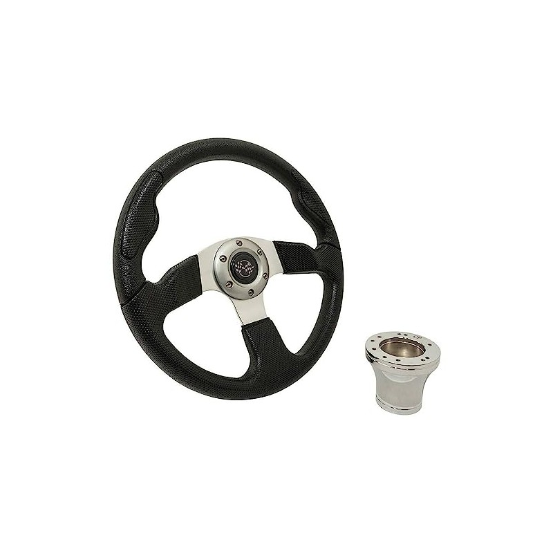 Golf Cart Steering Wheel Compatible with Yamaha Golf Carts | Fits 1996-Up Models Including G29/Drive & Drive2 | 13.5 Inch Black Rally Steering Wheel | Includes Chrome Hub Adapter