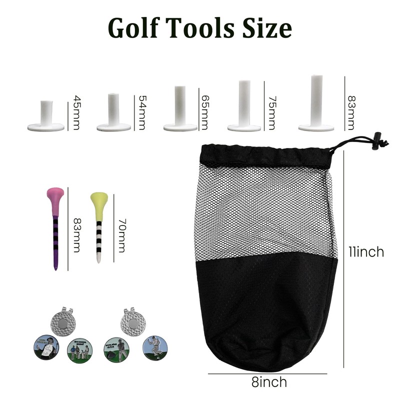 Golf Cleaning Kit Pro 7 Kinds in 1, Golf Water Brush, Golf Club Brush, Golf Towel, 50pcs Plastic tee, 5pcs Rubber Tee, 4pcs Golf Marker, and Golf Mesh Bag- Golf Accessories for Golf Lovers