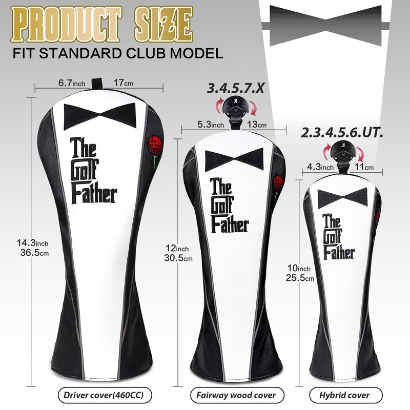 - Interchangable Number Tag: Each fairway wood cover has a rotating number tag of 3.4.5.7.X.