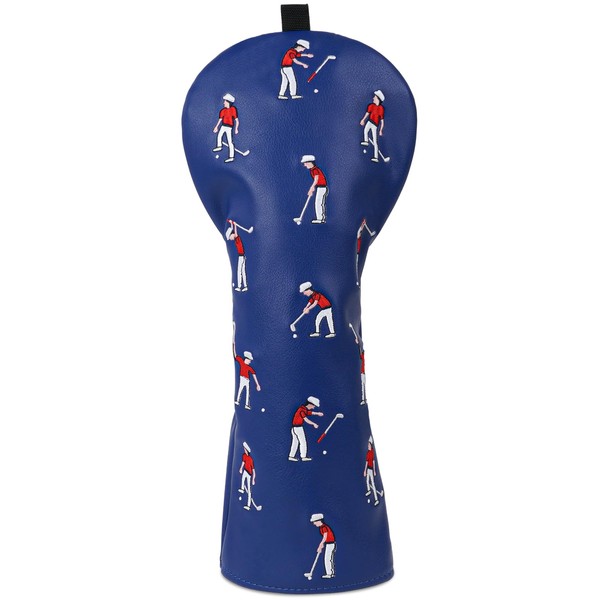 Golf Club Head covers for Driver 460CC DR #1 Elastic Closure Blue PU Leather Golfers Pattern