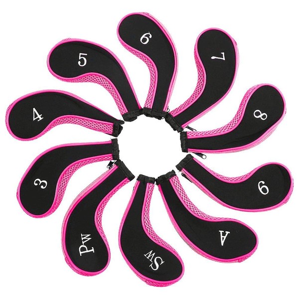 Golf Club Iron Head Covers, 10Pcs Neoprene Waterproof Wear Resistant Golf Putter Protector Case Golfer Accessory(Pink)