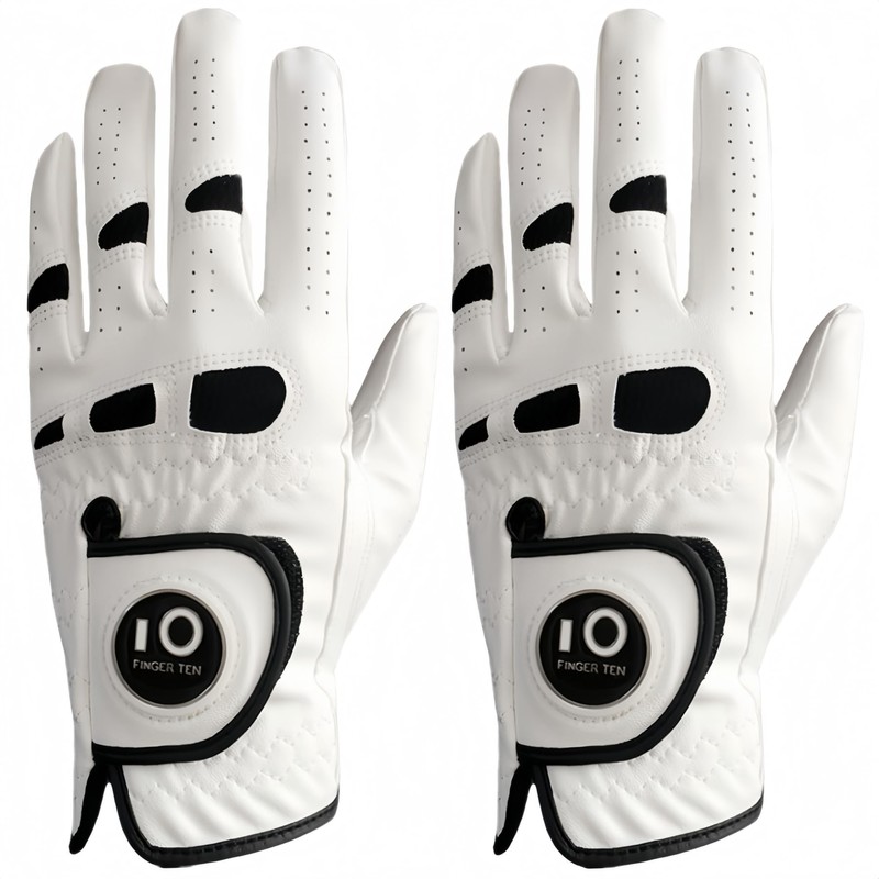 Golf Gloves for Men 2 Pack Natural Leather and Synthetic Leather Combination Soft Elastic Breathable Abrasion Resistant Non-Slip Grip Rain Sweat Resistant All Weather Models with Golf Marker QBZS-023
