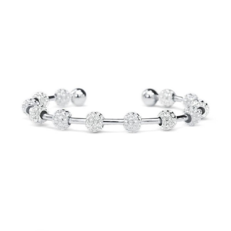 - Beads stay in place on the patented bracelet unless moved (one-by-one) by the wearer; sterling silver plated cuff with sterling silver plated 8 mm beads resembling dainty golf balls