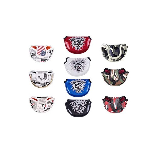 Golf Head Cover Golf Putter Cover Odyssey Red Small Mallet with Magnet (Skull White)