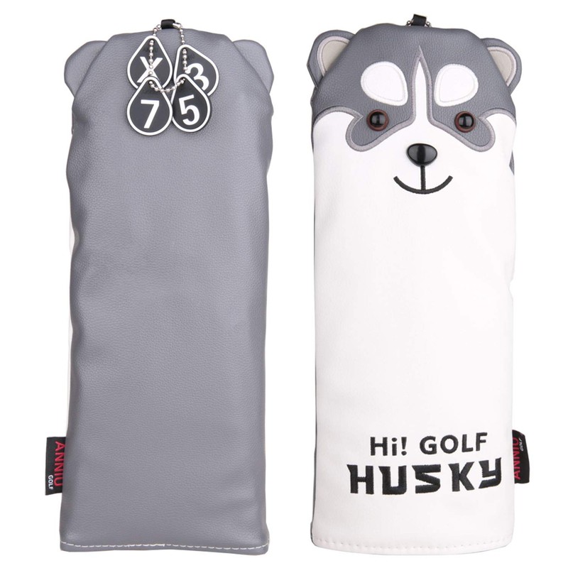 Golf Headcover Driver 1pc Wood FW 2pcs Utility UT Waterproof with Conversion Doug Set of 4 for Akita Inu Koala Cat Husky Dog (Husky Dog)