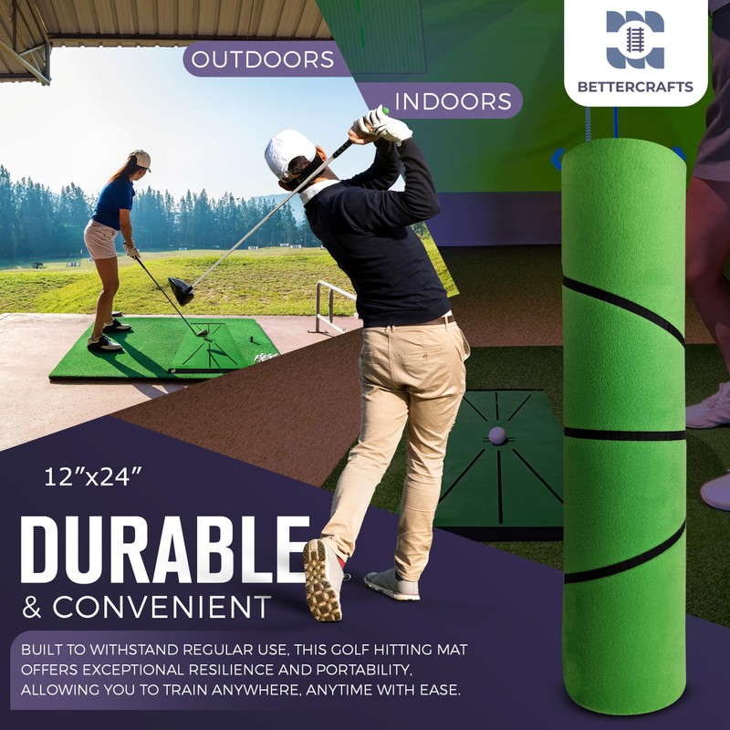- PROFESSIONAL SWING ENHANCEMENT: Perfect your golf skills with the BETTERCRAFTS golf hitting Mat, measuring 12" x 24". This innovative mat provides instant visual feedback on swing path and club face alignment, essential for refining your technique and enhancing accuracy in drives, chips, and putts.