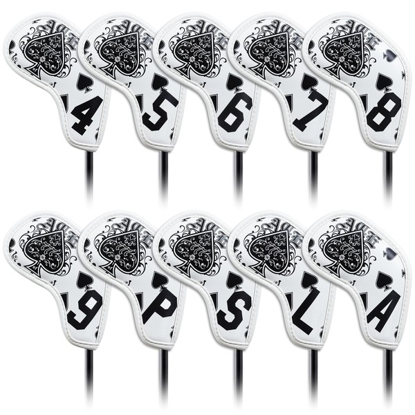 Golf Iron Club Head Covers Magnetic 10pcs 4-9,P,A,S,L Right Hand White PU Leather Lucky777 Pattern