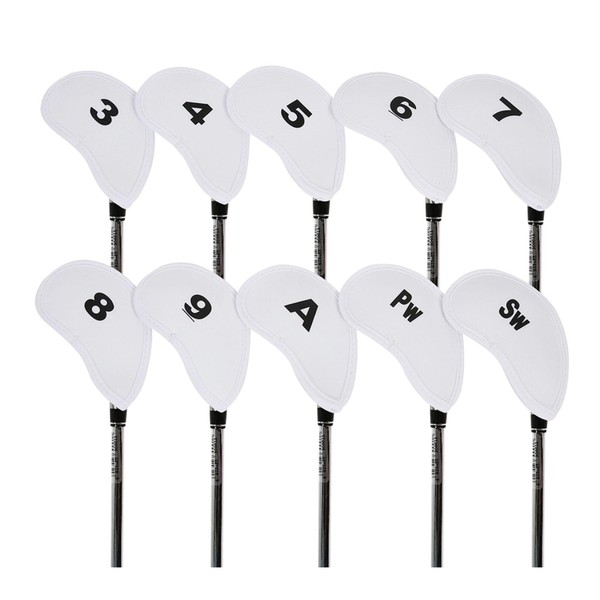 Golf Iron Covers Set of 10 with Counts Easy to Read Headcovers Cushion Material Protective Covers (White)