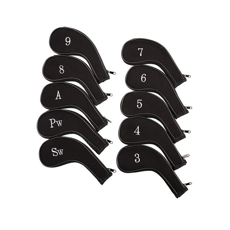 Golf Iron Headcovers Golf Club Head Cover Iron Wedge Head Protector with Zip and Embroidered Numbers (Black)