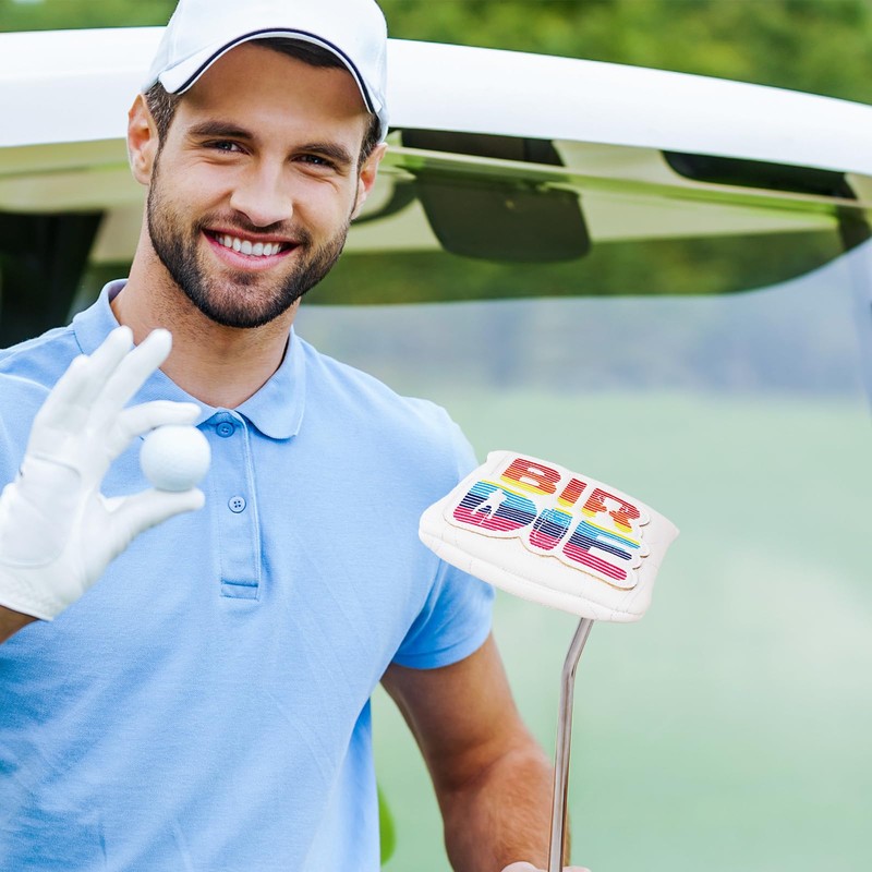Golf Mallet Square Putter Cover Magnetic Heel-Shaft Headcovers BIRDIE Pattern White PU Leather