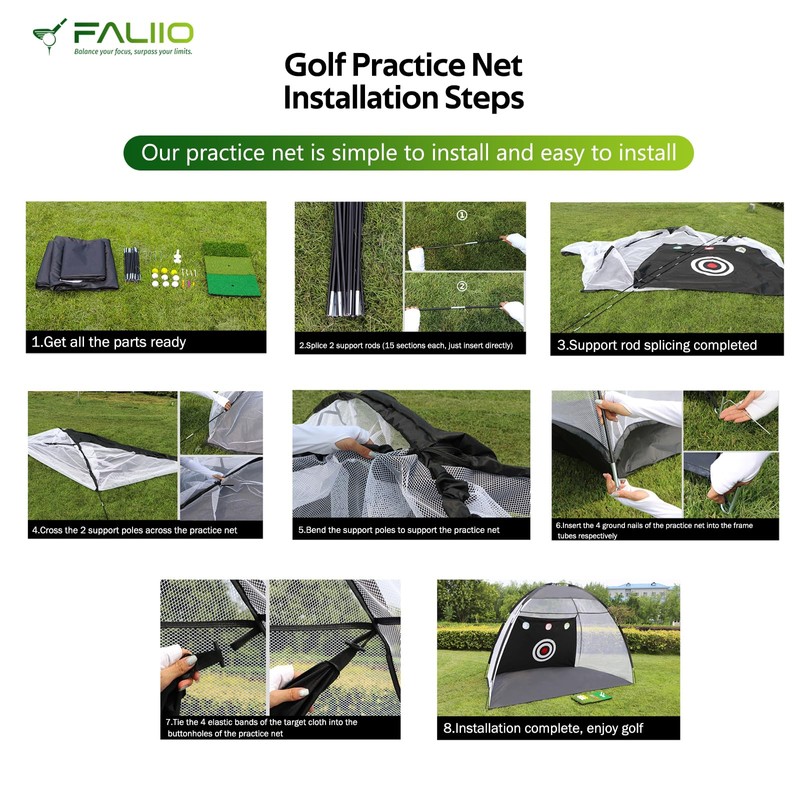 - SUITABLE FOR ALL KINDS OF PEOPLE:This golf practice net is easy to install and suitable for all kinds of venues. It only takes a few minutes to set up. Its structure is stable and the net is strong and durable, which can withstand multiple shots. Whether you are a golf beginner or a professional player, you can use it to improve your hitting technique and swing accuracy.