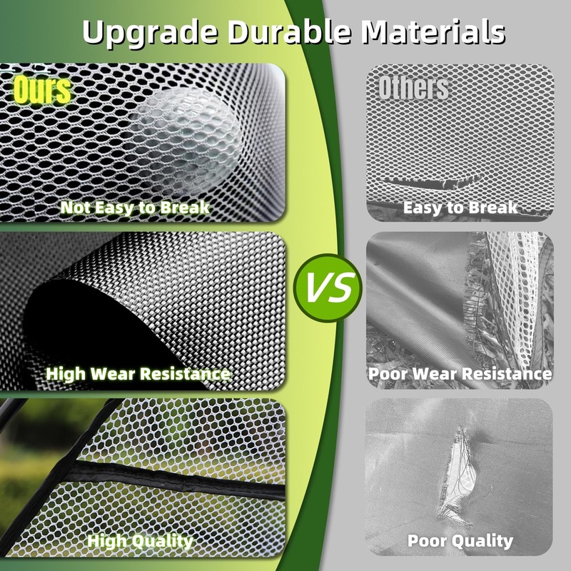 - HIGH-QUALITY CRAFTSMANSHIP:The golf practice net is a portable device designed for golf enthusiasts, allowing you to easily practice your swing at home, in the office or outdoors. It uses high-strength mesh material, 420D seamless Oxford cloth, and double-edge sewing, which can effectively absorb the impact of the ball, so you don't have to worry about the ball flying out of the net, making your practice safer and more efficient.