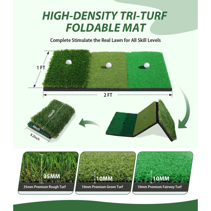 The foldable tri-turf mat complete stimulate the real lawn for all skill levels.