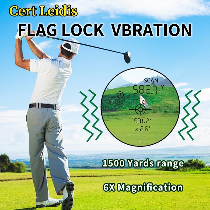 Golf Rangefinder with Slope, 1500 Yards Laser Range Finder Golfing, 6X Magnification with Slope Switch, Flag Pole Locking Vibration,Rechargeable with Magnet Stripe, Range Finders for Golfers & Hunting