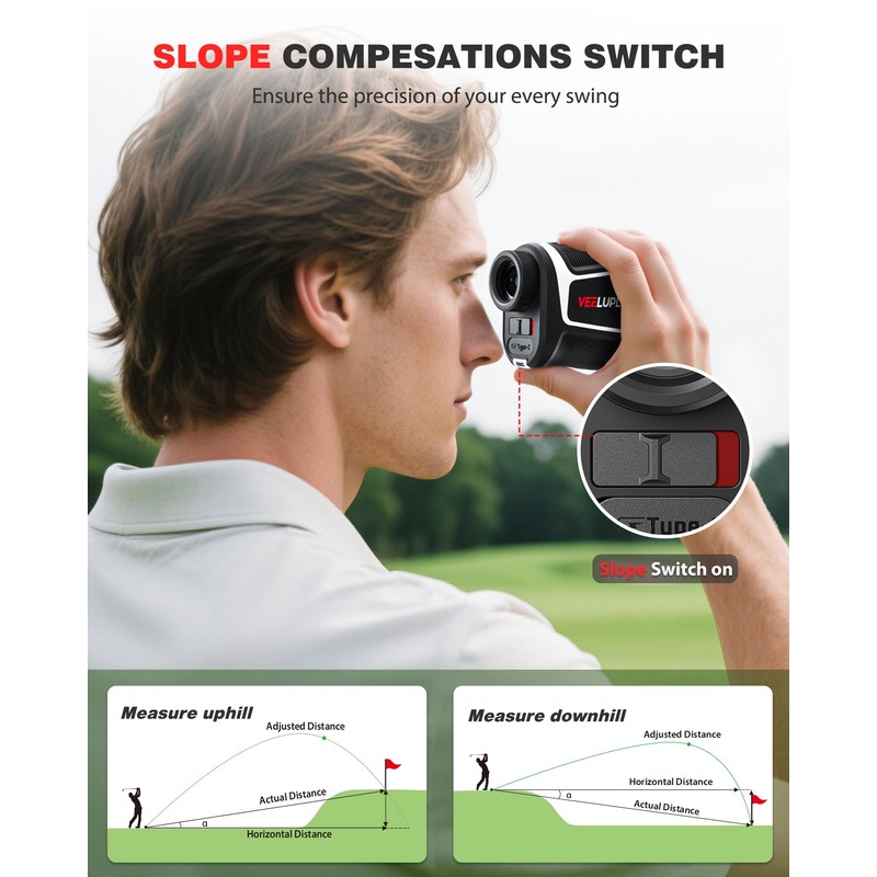 - 【Upgraded Slope Measurement Algorithm Golf Laser Rangefinder】 This golf rangefinder with slope can measure slope or descent angles based on altitude changes and calculate the adjusted slope distance accordingly. It's a perfect golf item for serious golfers. The side button allows for easy activation or deactivation of the slope measurement function, making it simple to operate and suitable for competitions. Looking for golf gifts? This is a fantastic option.