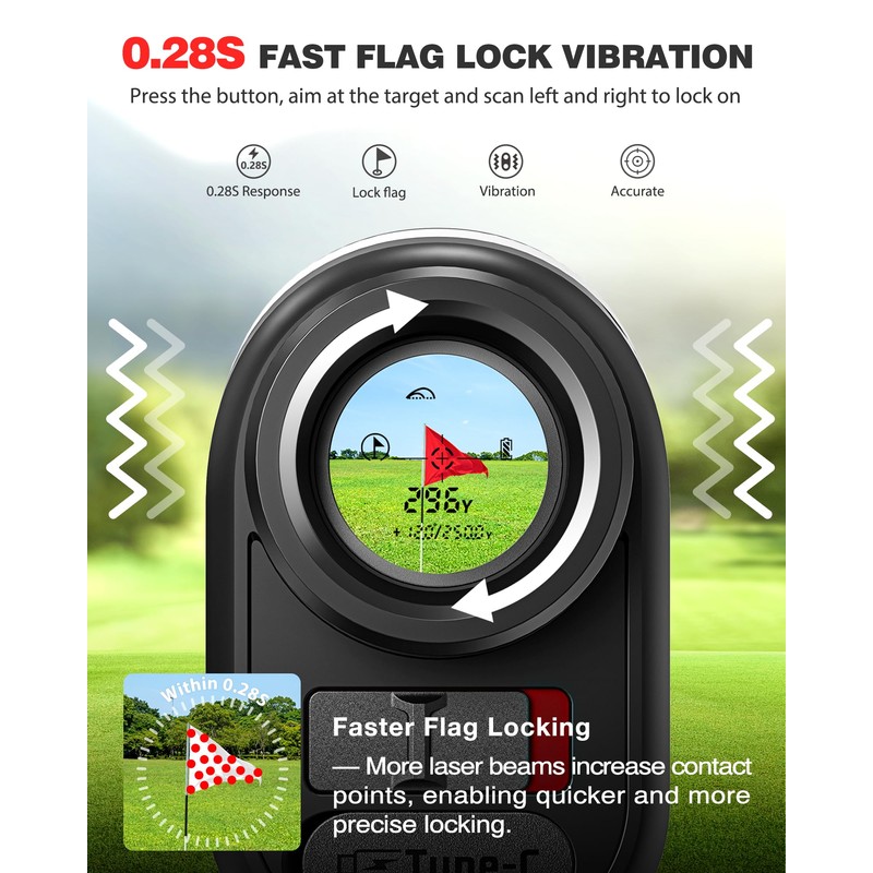 - 【Golf Fast Flag Lock Mode】 Within a range of 250 yards (approximately 228.6 meters), this rangefinder golf device can quickly aim at and lock onto the flagpole in just 0.5 seconds! After locking, a vibration alert confirms that the target has been locked, making it ideal for golf beginners and a great golf gift for men.