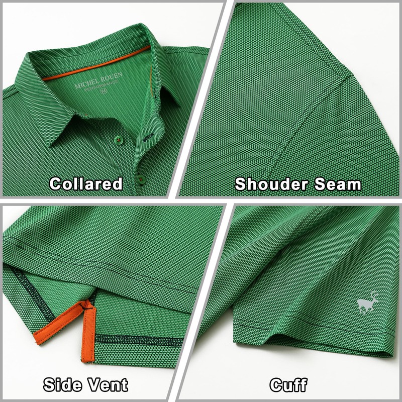 - STYLISH GOLF SHIRTS: This mens golf shirts are made from soft and smooth jacquard fabric, unique bright two-tone texture and well-made contrast button stitching add elegant and stylish for our mens polo meanwhile feel comfortable to wear all day long.