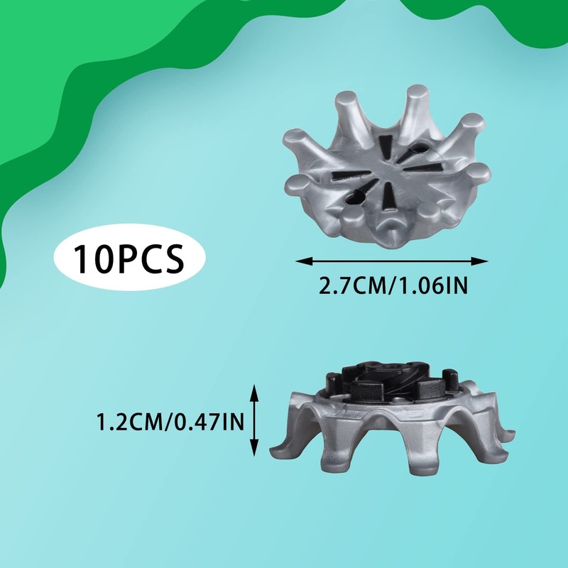 • 【Package Set】Get 10 reliable and sufficient replacements for your golf shoe spikes. Each spike is 27mm in diameter and 12mm in height.So you'll have plenty to keep you going for multiple rounds.