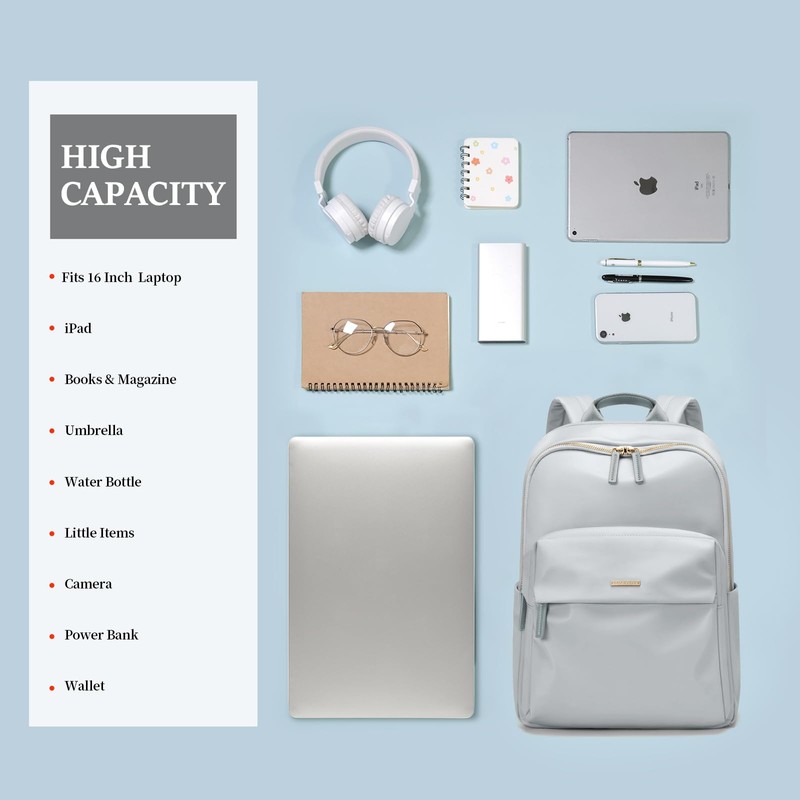 GOLF SUPAGS Laptop Backpack for Women Fits 16 Inch Notebook Casual Daypack Purse Work Travel College Bag (Pale Grey)