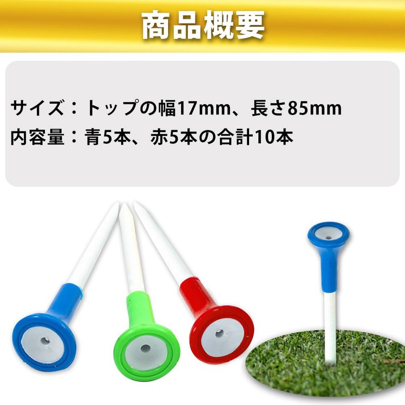 - 85mm Plastic Golf Tees Set of 10 (2 colors x 5)