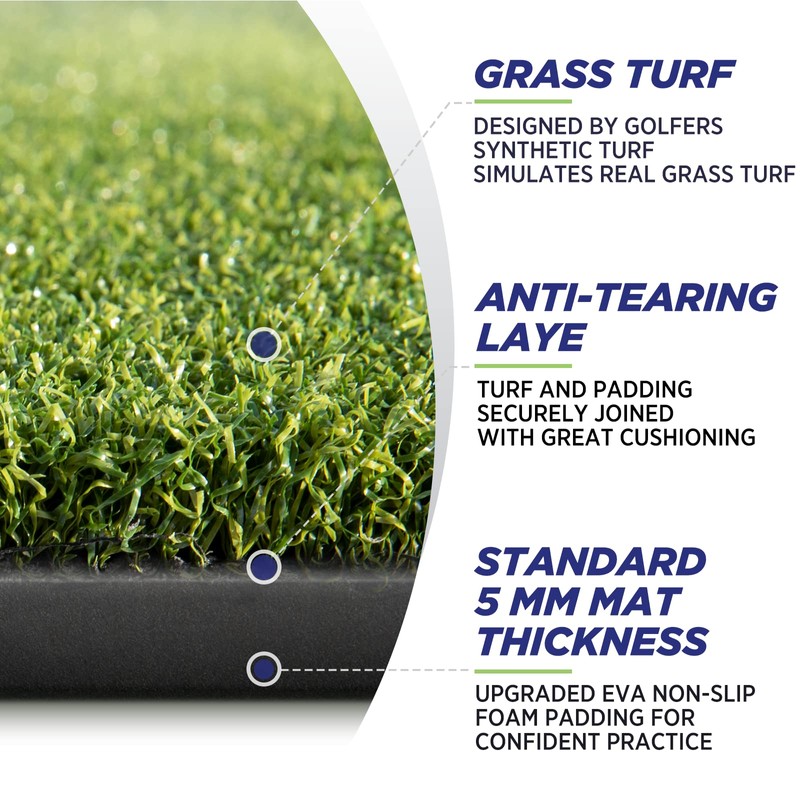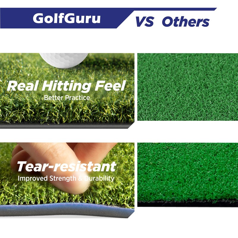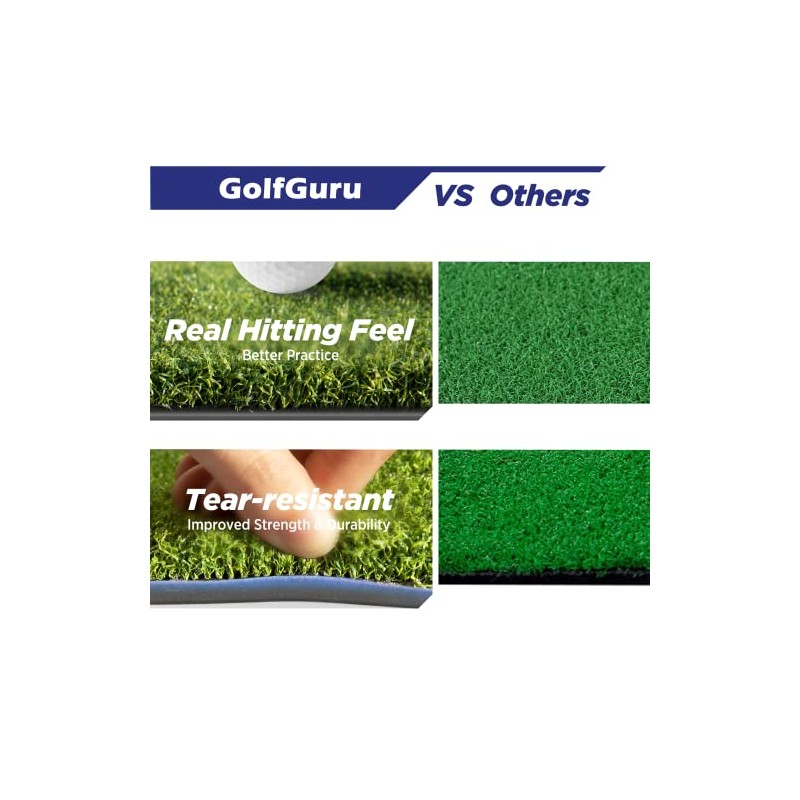 Golfguru Golf Mat, 5x4ft Artificial Turf Golf Hitting Mats Practice with 10 Golf Balls, 7 Golf Tees, 2 Rubber Golf Tees, Golf Training Aids for Backyard Driving Chipping Indoor Outdoor Training
