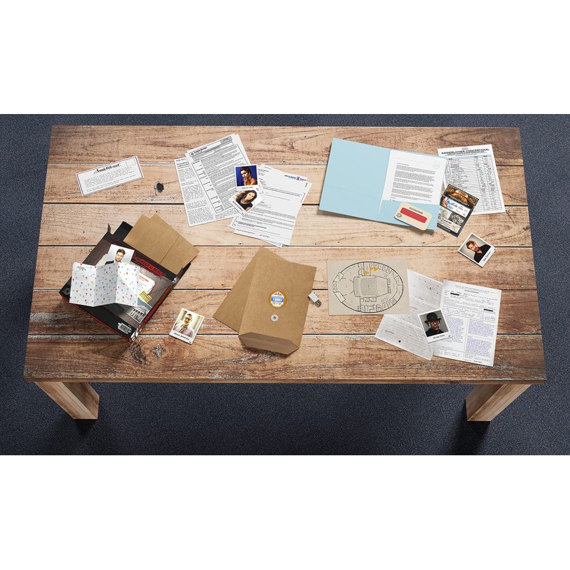 - Investigation files: Murder in Berlin contains a car report, newspaper section, police surveying, photos of evidence, floor plans, map of Berlin, notes, collected evidence, registration form and hints and solutions with decoder.