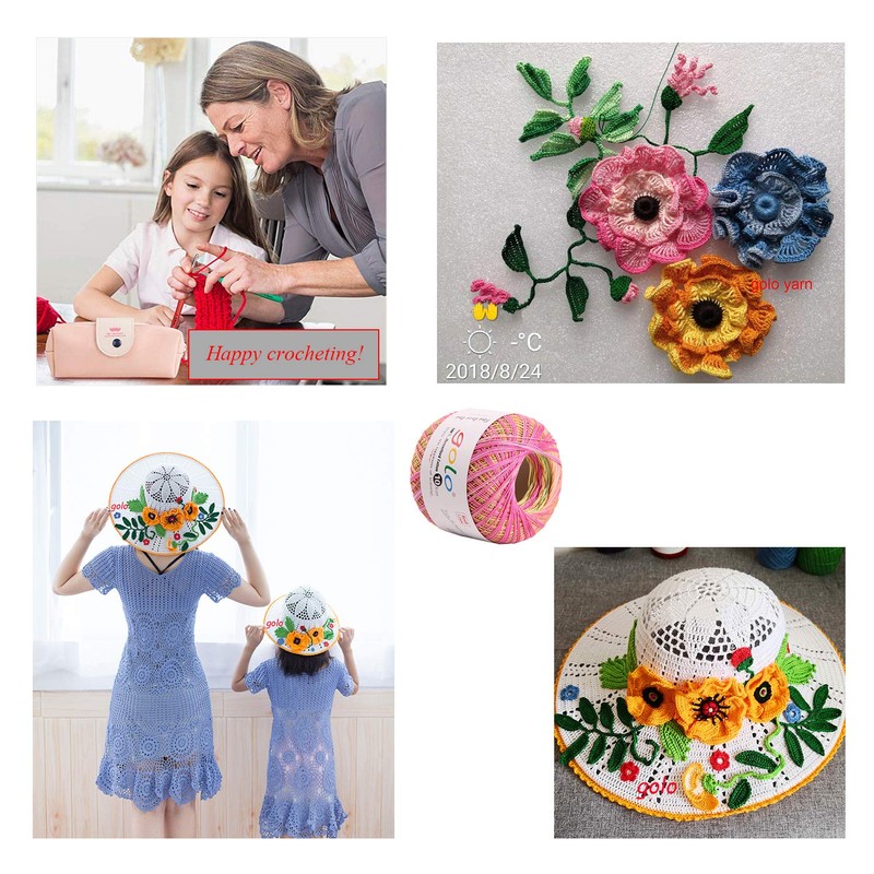 - The golo yarn is made of mercerized cotton, smooth surface and bright color,perfect for crocheting, hats, florals, tablecloths,etc.het flowers, dolls and other handicrafts.