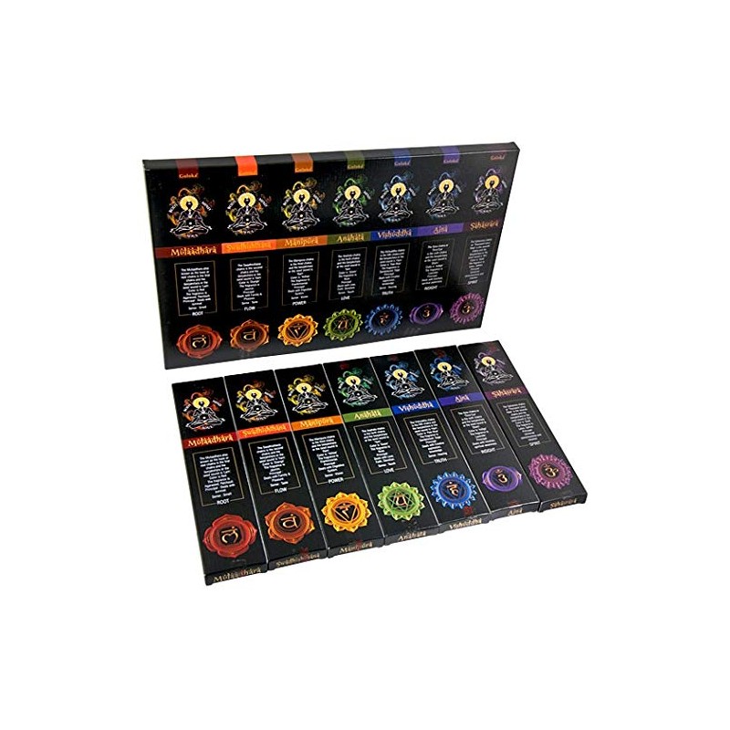Goloka Seven Chakra Kit - Perfect for Meditation, Reiki, Yoga, Relaxation, & Healing. Natural Hand Dipped Incense Variety Set, Cleanse & Purify Your Space - - Pack of 7 - New Released