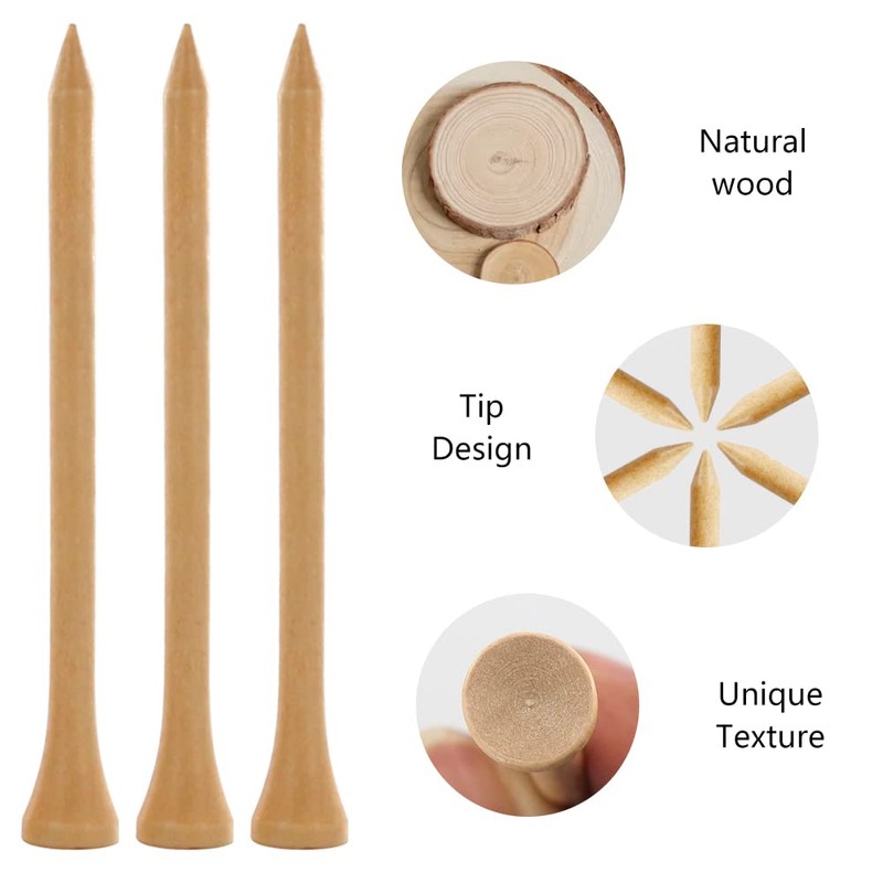 - Natural hardwood: Wooden tees for golf is recyclable and Environmental-Friendly, non-toxic, durable hardwood construction, and Virtually unbreakable. Our wood golf tee won't break easily, which can be reused many times on golf courses.