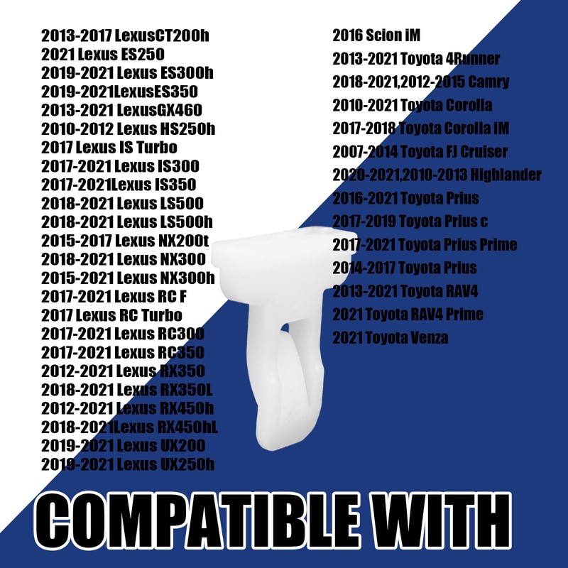 - Compatible with - 2016 Scion iM, 2013-2021 Toyota 4Runner, 2018-2021, 2012-2015 Toyota Camry, 2010-2021 Toyota Corolla, 2017-2018 Toyota Corolla iM, 2007 2014 Toyota FJ Cruiser, 2020-2021, 2010-2013 Toyota Highlander, 2013-2017 Lexus CT200h, 2021 Lexus ES250, 2019-2021 Lexus ES300h, 2019-2021 Lexus ES350, 2013-2021 Lexus GX460, 2010-2012 Lexus HS250h, 2017 Lexus IS Turbo, 2017-2021 IS300/IS350, 2018-2021 LS500, 2018-2021 LS500h, 2015-2017 NX200t, 2018-2021 NX300, 2015-2021 NX300h