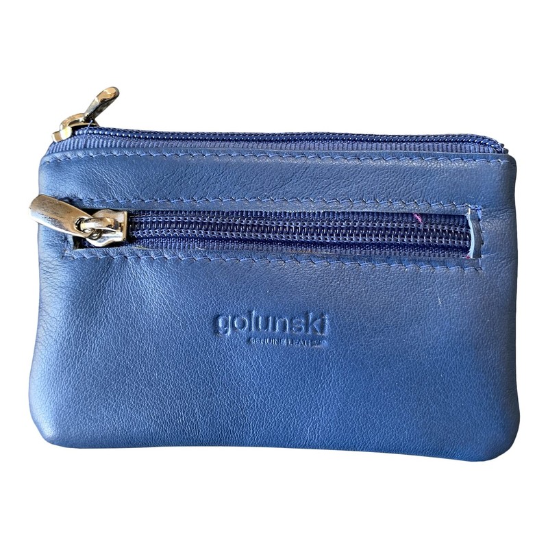 - The main zipped compartment holds a key ring and is large enough for credit cards. Chrome zip pulls. The Golunski leather is engraved on the back of the wallet.