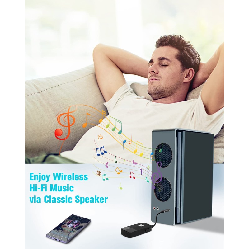 - ★ Featured Bluetooth V5.0+EDR : Advanced CSR 5.0 chipset combining A2DP comes with stable connectivity and remarkable signal stability. Non-stop and clear HiFi music streaming creates enjoyable listening experience.Ideal to be used for your wired Headphones/Speakers, home sound system, stereo and portable non-bluetooth device via the 3.5 mm aux or RCA audio connector.
