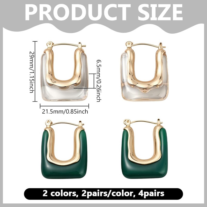 GOMAKERER 2 Pairs 2 Colors U Shaped Hoop Earrings, Chunky Resin Earrings Square Resin Huggie Earring Fashion Accessories Jewelry Gift for Women
