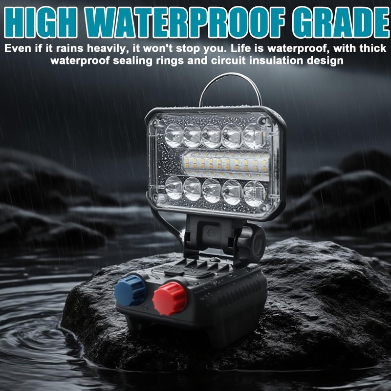 - 【USB-Ladefunktion】Diese makita akku lampe ist nicht nur Lichtquelle, sondern auch Powerbank. Mit USB-A und Typ-C Ausgängen ist die makita lampe 18v perfekt zum Aufladen von Smartphones oder Tablets. Die praktische led lampe akku spart Platz und bietet zusätzliche Funktionalität. Der Kopf der makita lampe ist um 180° verstellbar, sodass der led strahler akku in jede Richtung ausgerichtet werden kann. Diese led arbeitsleuchte überzeugt durch Flexibilität und Benutzerfreundlichkeit.