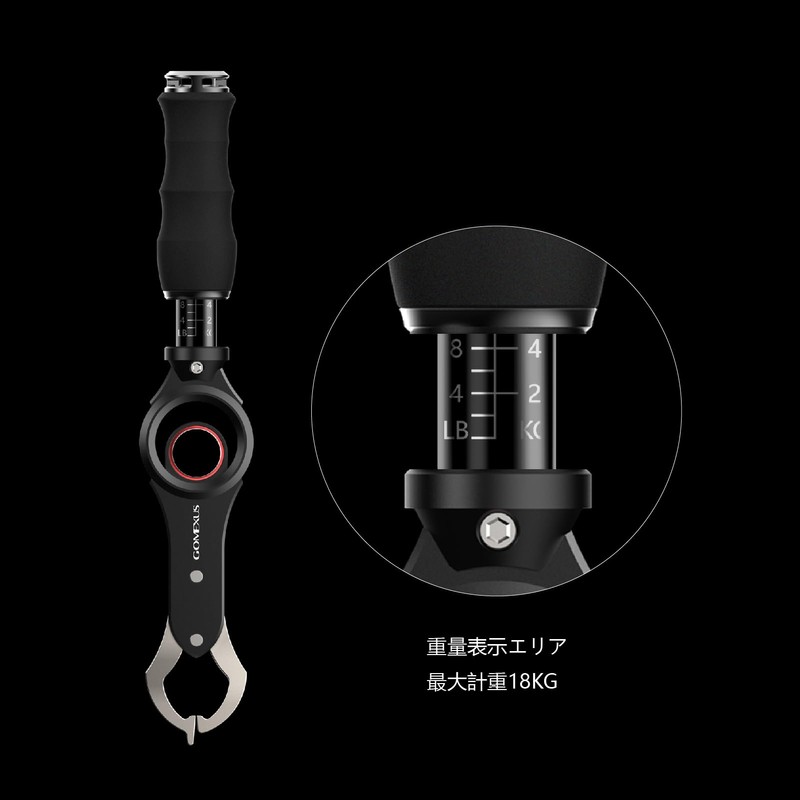 Gomexus Fish Grip, Aluminum Alloy, Measuring Function, Fish Grip, Rust Resistant, 360 Degree Rotation, Fishing Grip, Durable, Load Capacity 48.5 lbs (22 kg), Lure Fishing