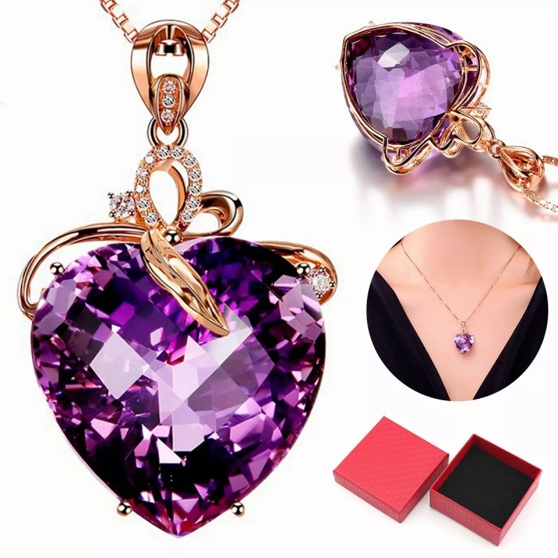 MATERIAL PREMIUM: este collar de cristal púrpura está hecho de oro rosa, chapado en oro y se produce con un revestimiento de ganga ecológico, sin ingredientes nocivos, hipoalergénico y no irrita la piel.
