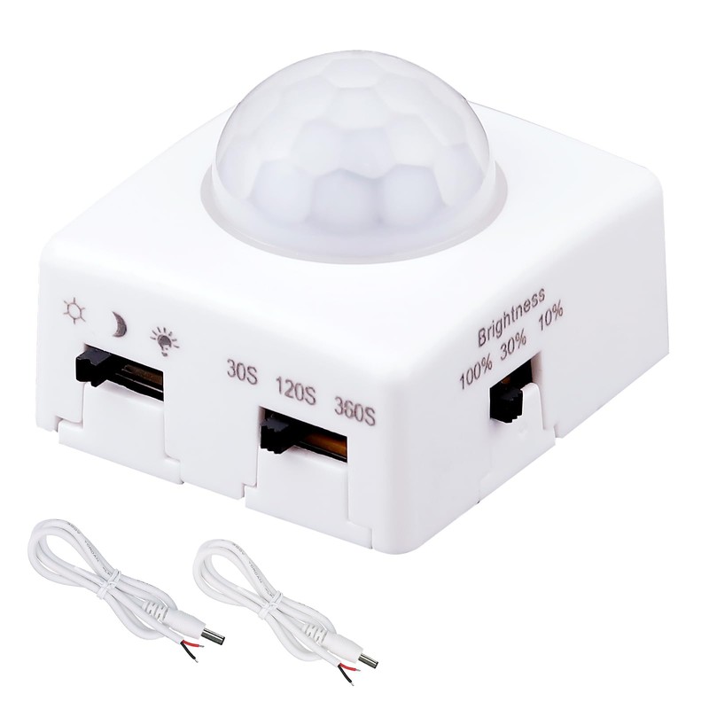 GOMING DC 5V 12V 24V Dimmable PIR Human Motion Activated Sensor Switch 3 Lighting Modes 3 Timing Off Modes 3 Brightness Modes for DIY LED Lighting(Max Load 72W)