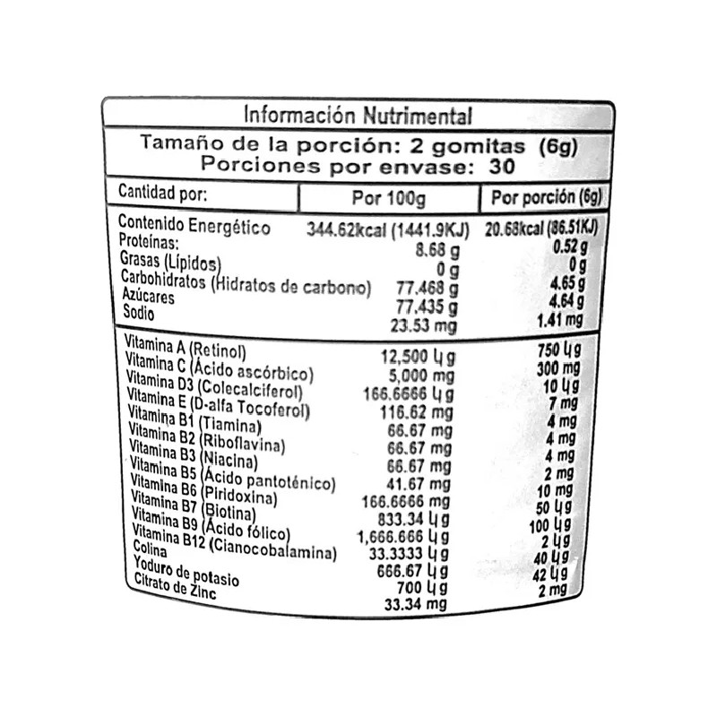 Administrar 1 a 2 gomitas al día según la edad del niño o indicación médica.