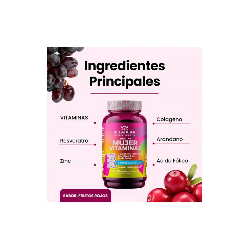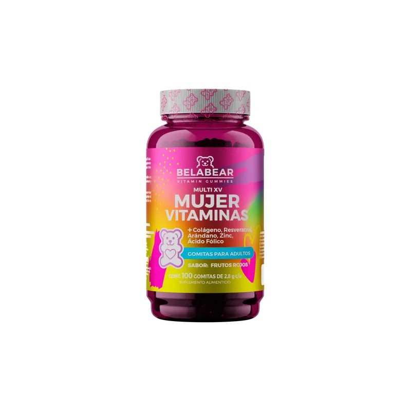 Gomitas Mujer Vitaminas 100 Gomitas Belabear Sabor Frutos Rojos